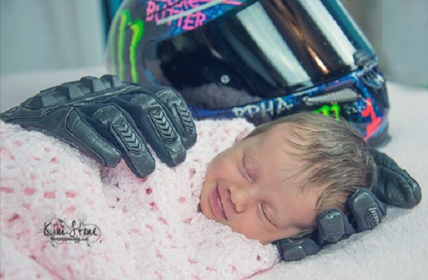 "Biz Obrini buvisining adyoliga o‘radik va uning yoniga dadasining dubulg‘asini (shlemini) qo‘dik, qizchaning boshi tagiga otasining mototsikl minganda kiyadigan qo‘lqopini qo‘yganimda, u uyqusida kulib yubordi! Darhol qo‘limga kamerani olib, ushbu lahzalarni suratlarga muhrladim!" - deydi Kim. "Obrining onasi Ketrin esa bu payt mening orqamda ko‘z yosh to‘kib turardi"...