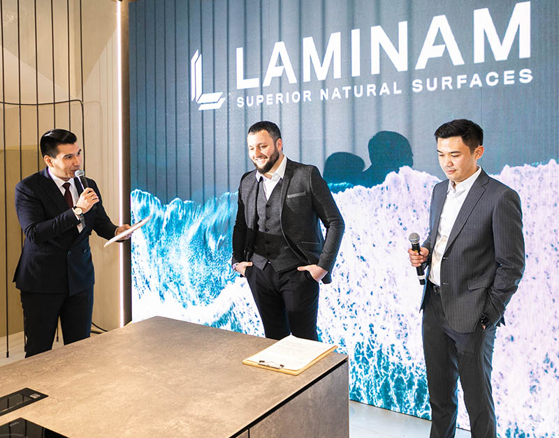 «Продукция Laminam уникальна по своим свойствам. Со стороны дизайнеров Ташкента могу уверенно сказать: мы рады, что у нас появляются новые продукты, такие как Laminam, которые позволяют создавать более интересные проекты, которые технически намного проще в исполнении. А еще хочу поблагодарить компанию за организацию такого вечера и презентацию материала».