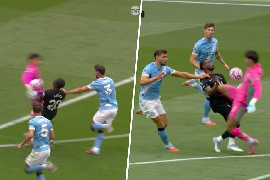 Biroz o‘tib «Siti» juda og‘ir ahvolga tushib qolishi mumkin edi, 39-daqiqada Trafford jarima maydoni tashqarisiga chiqib, to‘p uchun kurash chog‘ida Quddusning ko‘krak sohasiga tizzasi bilan zarba berdi, yetmaniga to‘pni qo‘li bilan o‘ynadi. Bu holatda bosh hakam darvozabonni maydonda chetlatishga haqli edi, ammo bunday qarorga kelmadi, VAR ham vaziyatga aralashmadi.