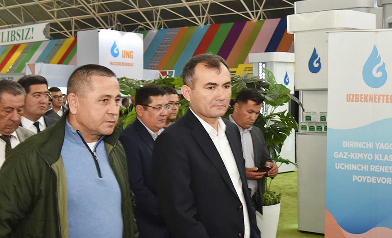 Qashqadaryo viloyati hokimi Murodjon Azimov “O‘zbekneftgaz” AJ Boshqaruv raisi Mehriddin Abdullayev hamrohligida neft-gaz korxonalarining alohida ko‘rgazma stendi hamda yangi turdagi sintetik yoqilg‘ilari, yuqori sifatli polimer mahsulotlari, tomchilatib sug‘orish tizimi ehtiyot qismlari, kompozit panellari, xalq iste’moli mollari, keng spektrdagi yoqilg‘i mahsulotlari hamda importdan xarid qilinadigan TMB namunalari bilan tanishib chiqdilar.