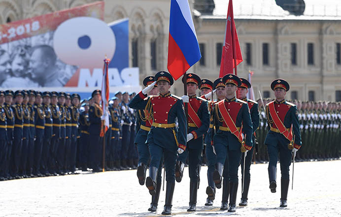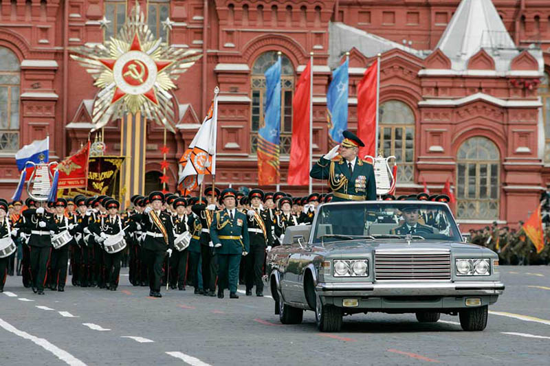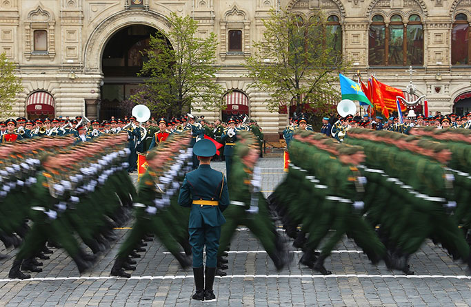 Paradga Rossiya Quruqlikdagi qo‘shinlar bosh qo‘mondoni Oleg Salyukov qo‘mondonlik qilmoqda. Paradni Rossiya mudofaa vaziri Sergey Shoygu qabul qilyapti.