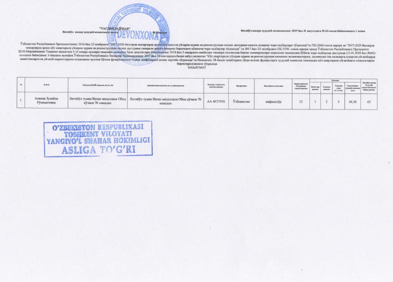 Masala yuzasidan Toshkent viloyati hokimligi axborot xizmati rahbari Behzod Qobulov bilan bog‘landik. U murojaat zudlik bilan o‘rganib chiqilgani va Toshkent viloyati hokimi vazifasini bajaruvchi Rustam Xolmatov Zulayho Aliyeva bilan uchrashib, ayolga «Farovon» MFYdagi 12-uyning 2-xonadoni kalitini topshirgani haqida ma'lumot berdi.