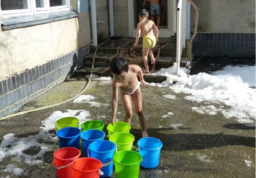 Video: Bog‘cha bolalari ochiq havoda ustilaridan sovuq suv quyishadi