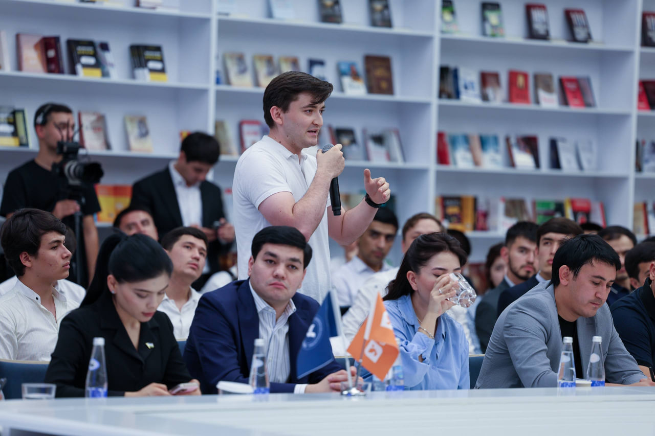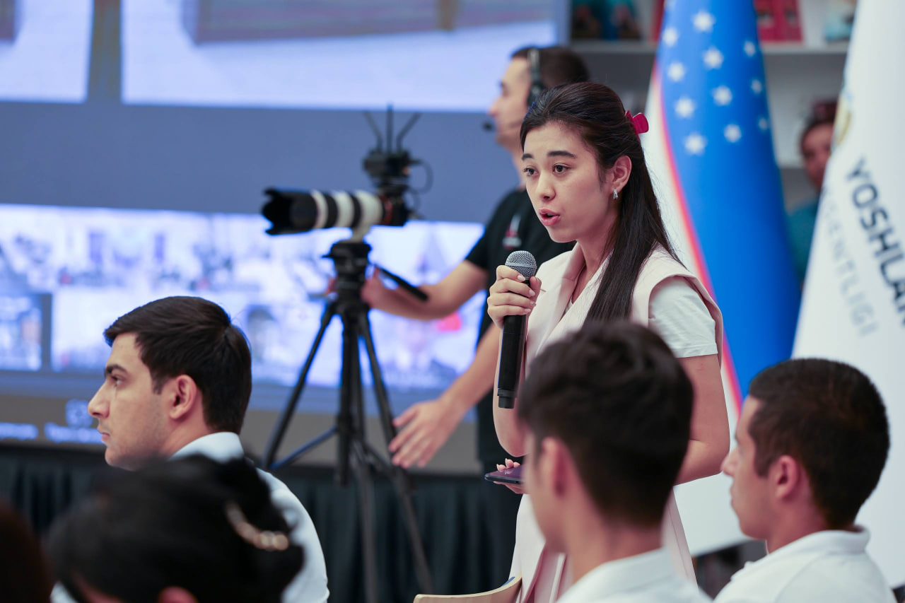 Toshkent shahridagi Yoshlar ijod saroyida tashkil etilgan ochiq muloqotda 200 nafar ishtirokchi markaziy studiyadan oflayn, 400 nafar hududiy va 25 ta davlatdan 70 nafar xorijdagi tadbirkor yoshlar onlayn ishtirok etdi.