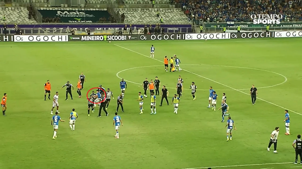 Barcha hakam hushtagi chalinishini kutib turganida «Kruzeyro» so‘nggi hujumni uyushtirdi, hujum oxirida ushbu klub yarimhimoyachisi Kristian «Atletiko Mineyro» darvozaboni Eversonga borib urildi. To‘pga birinchi bo‘lib ulgurgan darvozabonga raqibning harakati yoqmadi: u avvaliga kurashga xos uslub qo‘llab, Kristianni oyog‘idan ushlab yiqitdi, keyin esa uning ustiga chiqib olib, tajovuzkor harakatlarini davom ettirdi.
