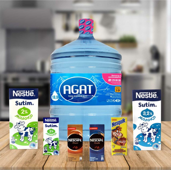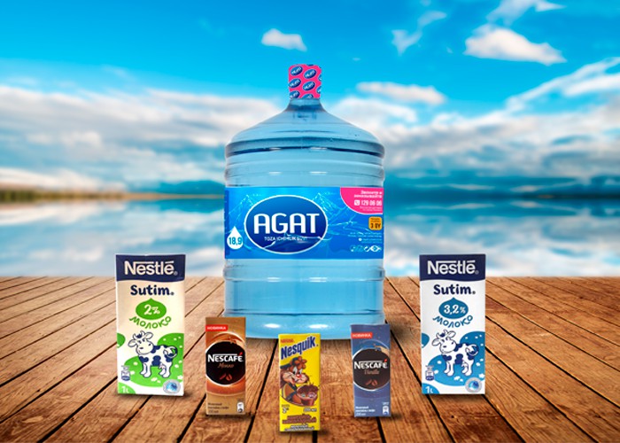 Ishlab chiqaruvchilarning xabar berishicha, 18,9 litrli suvni ofis yoki uylarga yetkazib berish xizmati orqali endi nafaqat suv balki NESTLE kompaniyasining sut mahsulotlarga ham buyurtma buyurish mumkin.