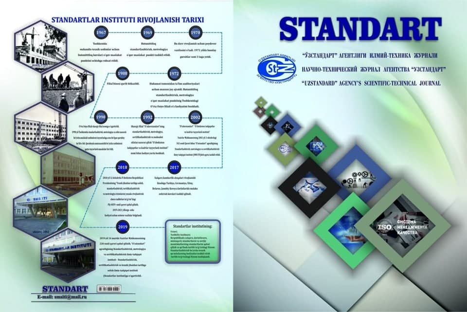 «STANDART» ilmiy-texnika jurnali O‘zbekiston Respublikasi Oliy attestatsiya komissiyasi Rayosatining qarori bilan «Dissertatsiyalar asosiy ilmiy natijalarini chop etish tavsiya etilgan ilmiy nashrlar ro‘yxati»ga kiritildi.