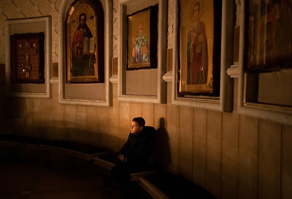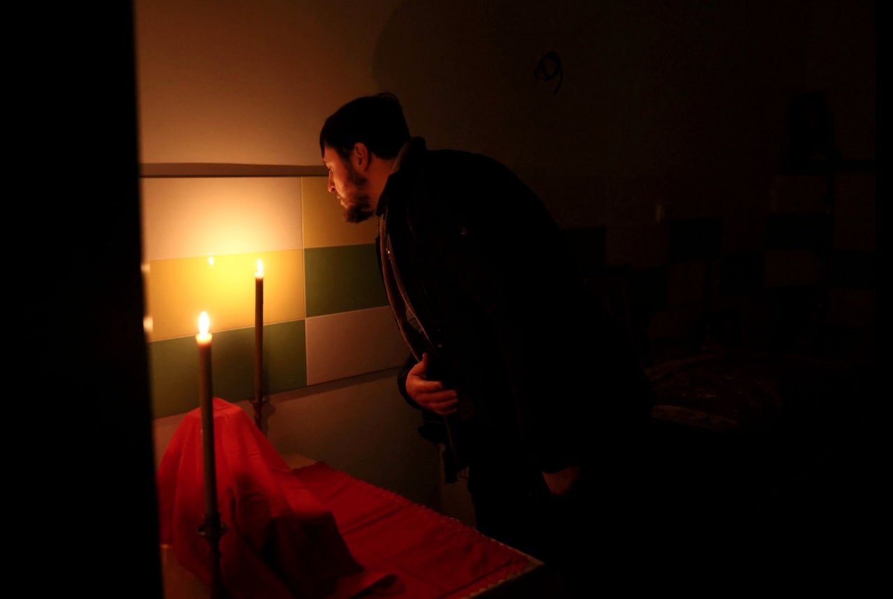 Kiyevdagi cherkovda chiroq yorug‘idagi ibodat