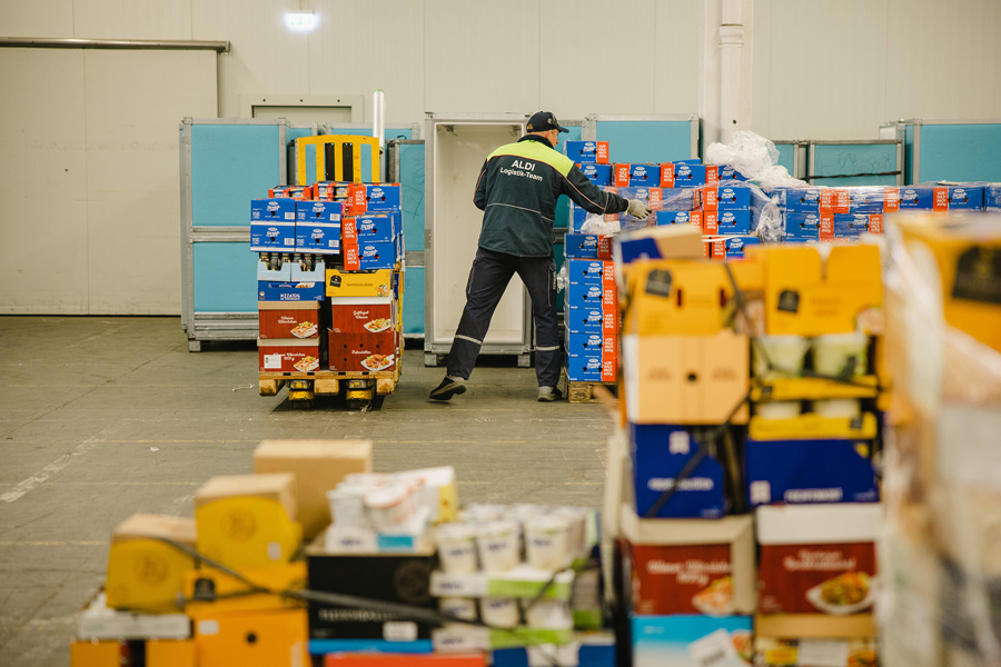 Aldi diskaunterida mahsulotlarini yuklash. Foto: Global Look Press