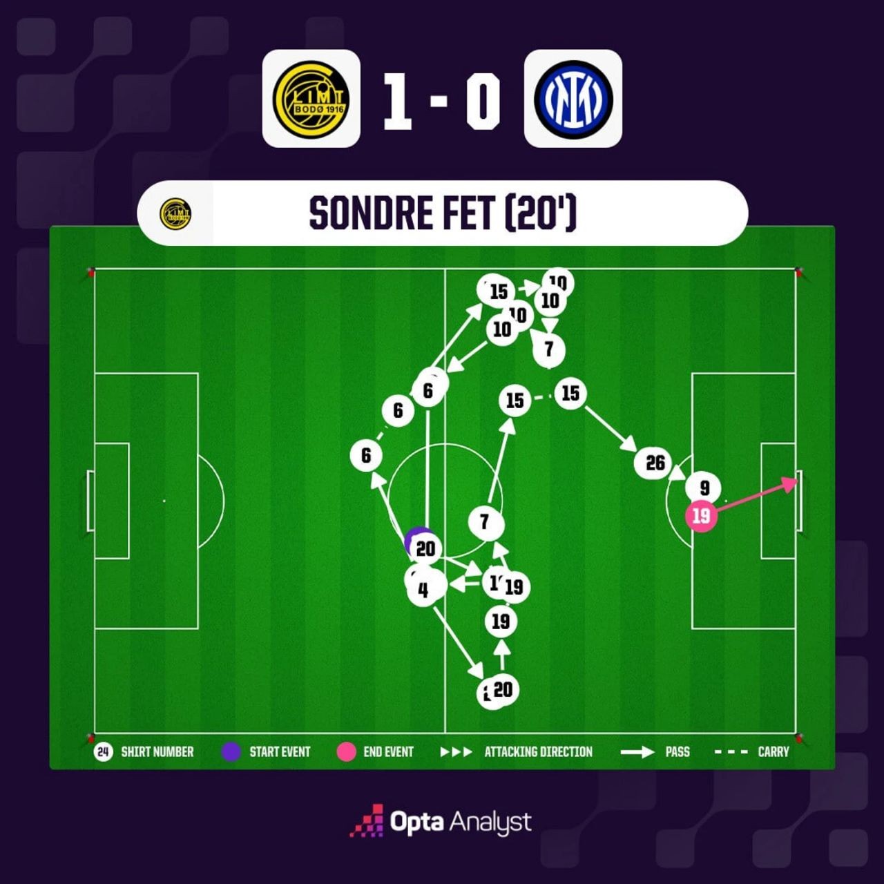 Shusiz ham YeChLning bu mavsumi kashfiyoti bo‘lgan «Budyo/Glimt» turnir o‘tish bosqich o‘yinlarida yana bir pog‘ona yuqoriga ko‘tarildi. Jamoa Milandagi javob uchrashuvida ham A Seriya peshqadami «Inter» ustidan g‘alaba qozonib (3:1, 2:1) keyingi bosqichga yo‘l oldi.