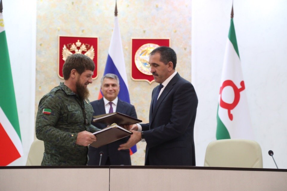 Ingushetiya rahbari Yunus-Bek Yevkurov va Checheniston rahbari Ramzan Qodirov hududlar o‘rtasidagi chegaralarni aniqlash bo‘yicha kelishuvni imzoladi, deb xabar berdi RIA Novosti.