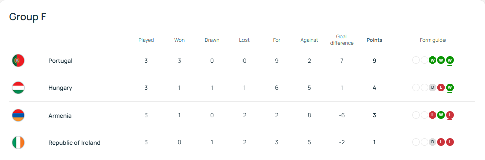 Shuning o‘zi ham o‘ziga xos yubileyga aylandi – Krish terma jamoa o‘yinlarida o‘ninchi bor penaltidan foydalana olmadi. Kelleher esa o‘yinga qo‘shib berilgan daqiqalarda antiqahramonga aylandi, u Trinkauning uzatmasiga chiqishda xatoga yo‘l qo‘ydi va Ruben Nevesh bo‘sh qolgan darvozani ishg‘ol etdi. Portugaliya uch uchrashuvda uch g‘alabaga erishgan holda guruh peshqadamligini davom ettirdi, Irlandiya esa guruhning so‘nggi o‘rnida qolmoqda va keyingi turda Armaniston bilan o‘yinda britanlarga g‘alaba suv va havodek zarur bo‘ladi.