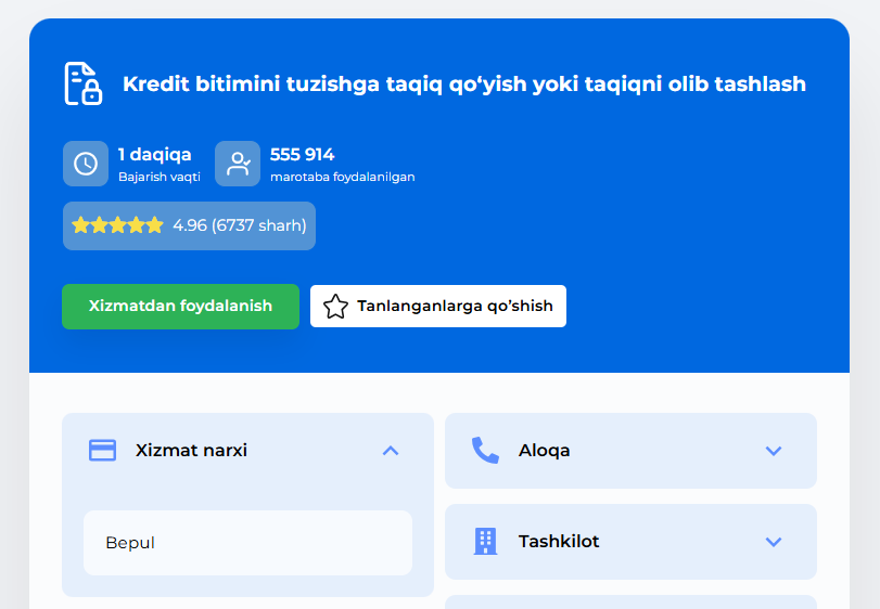 O‘zbekistonda “Kreditga taqiq” xizmati – odamlar firibgarlikka uchrashidan qo‘shimcha himoya va moliyaviy intizomga ko‘maklashuvchi chora sifatida, 2025 yil iyun oyida ishga tushirilgan.