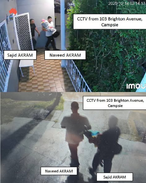 12 dekabr kuni kechqurun olingan videokuzatuv kamerasi orqali olingan videoda ushbu ota va o‘g‘il Bondi-Bich yaqinida avtomobilda ketayotganini ko‘rish mumkin.