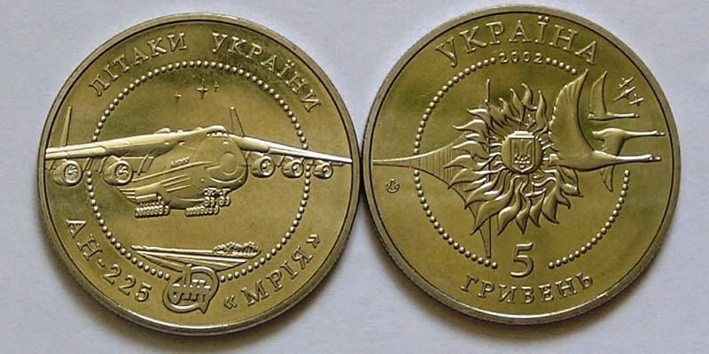 - 2002 yilda Ukrainada An-225 tasviri tushirilgan 5 va 20 grivnalik yubiley tangalari zarb etilgan;