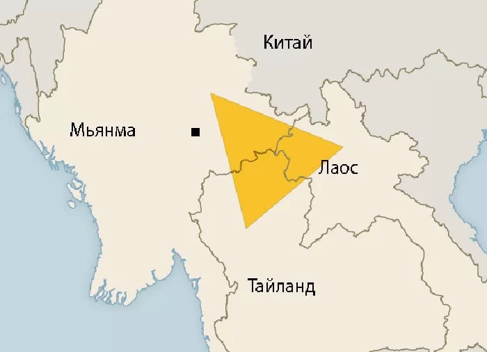 Janubiy-Sharqiy Osiyoda Oltin uchburchak deb nomlangan joy bor. Bu hudud Tailand, Myanma va Laos chegaralari o‘rtasida joylashgan. Afg‘onistonda hokimiyat tepasiga “Tolibon” kelgach, Oltin uchburchak dunyodagi giyohvand moddalar yetishtiriluvchi asosiy makonlardan biriga aylandi.