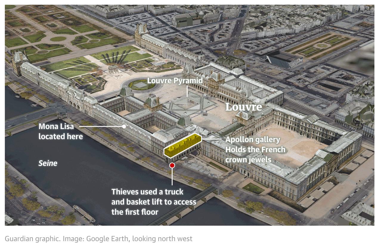 Jinoyatchilar Luvrning Apollon galereyasini nishonga olishgan — bu yerda Fransiyaning tarixiy toj javohirlari kolleksiyasi saqlanadi.
