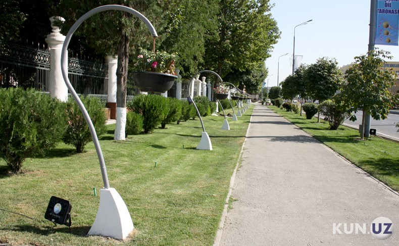 Yo‘l bo‘ylaridagi bir-biridan chiroyli va o‘ziga xos dizayn bilan yaratilgan gulxonalar, turli konstruksiyalarga o‘rnatilgan gullar, bayram ruhini beruvchi ko‘rgazmali vositalar tungi chiroq va illyuminatsiyalar yog‘dusida yanada maftunkor joziba kasb etadi. Turfa rang chiroqlar bilan bezatilgan favvoralar musiqa ohangiga monand ko‘kka otilib, kishiga bir olam zavq bag‘ishlaydi.