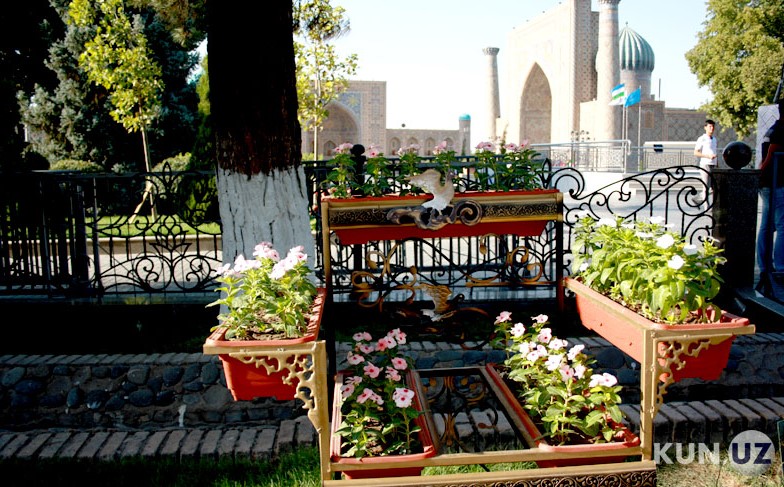 Samarqandda bayram nafasi: qadimiy shahar ko‘chalari gullarga burkanmoqda (foto)