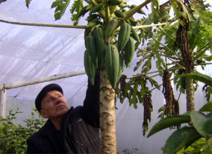 Ulug‘bek Qarshiyevning hovlisida jami 13 sotix maydonni egallagan uchta issiqxona mavjud bo‘lib, issiqxonada tropik papayya daraxti o‘stirilmoqda. Uning qayd etishicha, ko‘chat 3-4 yil avval ekilgandi.