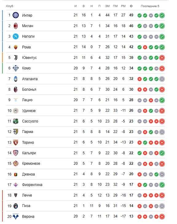 «Milan» – A Seriyada intriga saqlanib qolishini ta’minlamoqda. «Inter»ni ta’qib etayotgan rossonerilar hafta ichida ikkinchi bor o‘z o‘yinini hamshaharlaridan keyin o‘tkazdi va jamoaning xato qilishga huquqi yo‘q edi. Bu bir tomondan ruhiy bosim. Boshqa tomondan esa maksimal ishtiyoq va e’tiborni jamlagan holda o‘ynashga imkon beradi. Bu payshanba oqshomida mavsum kashfiyoti «Komo» ustidan ishonchli g‘alabaga (3:1) erishishda yordam bergandi.