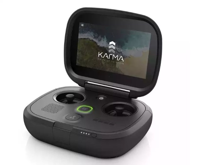 DU pultida o‘z ekrani bor bo‘lib, mobil dastur esa ikkinchi kishiga agar zarur bo‘lsa kamerani boshqarish imkonini beradi. Dron 56 km/soat tezlikda harakatlanadi, akkumulyator 20 daqiqa parvozga yetadi, maksimal balandlik 4500 metrni tashkil qiladi. Pult uchun masofa 1 km bilan chegaralangan. GoPro Karma hozircha o‘z egasini kuzata olmaydi. Ishlab chiqaruvchilar hozirda oddiy boshqaruvga e'tibor qaratishmoqda.