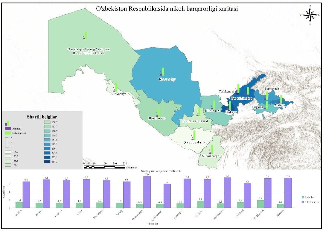 Xususan, nikoh barqarorligi koeffitsiyenti Moldovada – 642,7, Ozarboyjonda – 431,9, Qozog‘istonda – 328,2, Qirg‘izistonda esa – 289,6 promilleni tashkil etadi.