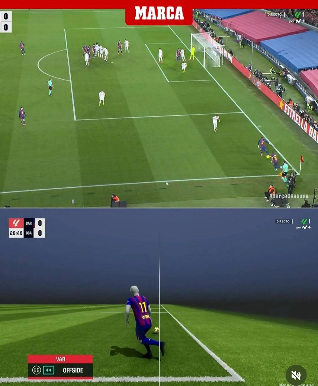 «Barsa» «Osasuna»ga qarshi o‘yinning birinchi bo‘limi o‘rtalarigacha faol hujumlar uyushtirdi va raqibni holdan toydirishdi. Shundan keyin pamplonaliklar ofsayd qopqoni qo‘yishda xato qilishdi va Ferran Torres Reshfordning uzatmasi bilan hisobni ochishdi. Ammo vaziyatga VAR aralashib, to‘pni burchakdan o‘yinga kiritish vaqtida «o‘yindan tashqari» holat yuzaga kelganini qayd etishdi. Rafinyaning tovoni ofsayd chizig‘idan tashqarida qolib ketgandi.