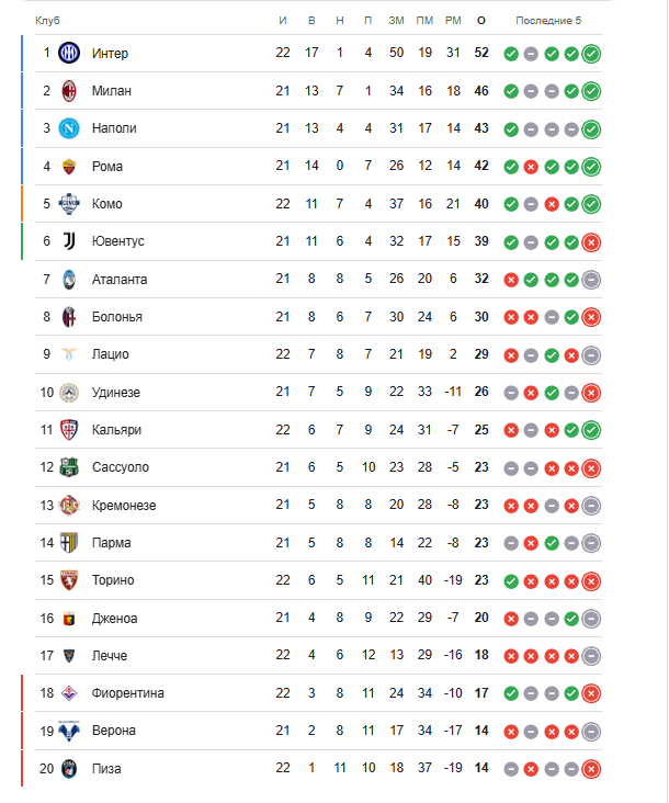 Umuman, shu kuni mezbonlar raqiblar darvozasini jami 6 bor ishg‘ol etishdi va turnir jadvalidagi raqobatchilarning yakshanba kungi o‘yinlari yakuniga qadar top-4 dan ikki ochkolik masofada bo‘lishadi. 22 turdan keyingi 40 ochko – jamoa tarixidagi rekord ko‘rsatkichdir. «Torino» esa o‘z tarixida ilk bor bir mavsumda bir jamoaning o‘zidan 11 gol o‘tkazib yubormoqda – ushbu jamoalarning birinchi davradagi o‘yinida 1:5 hisobi qayd etilgandi.