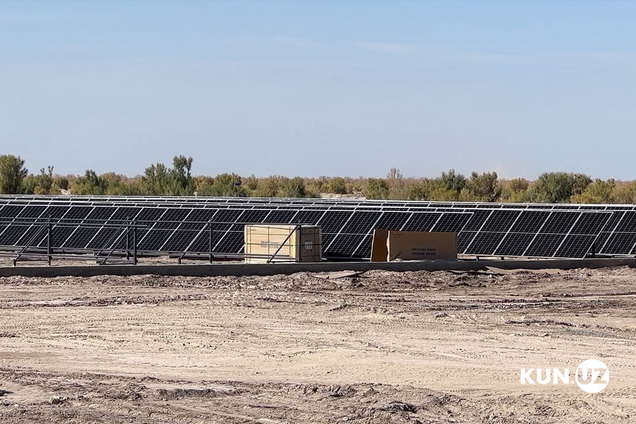 Majmua yaqinida o‘rnatilayotgan quyosh panellari.
