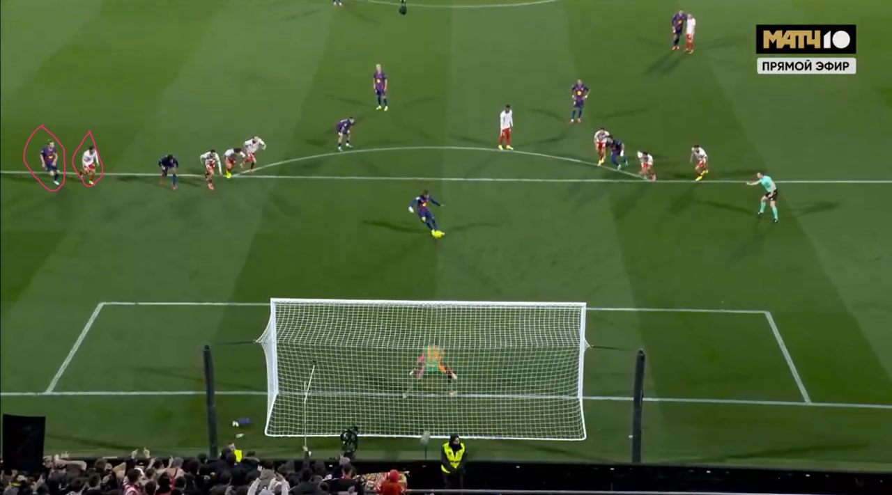 Lekin bu holatda raqib futbolchilari zarba berilgunicha jarima maydoniga kirib ketishgandi va ustundan qaytgan to‘pni uzoqlashtirishda bu ularga qo‘l keldi.
