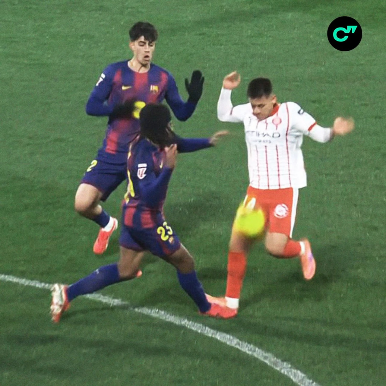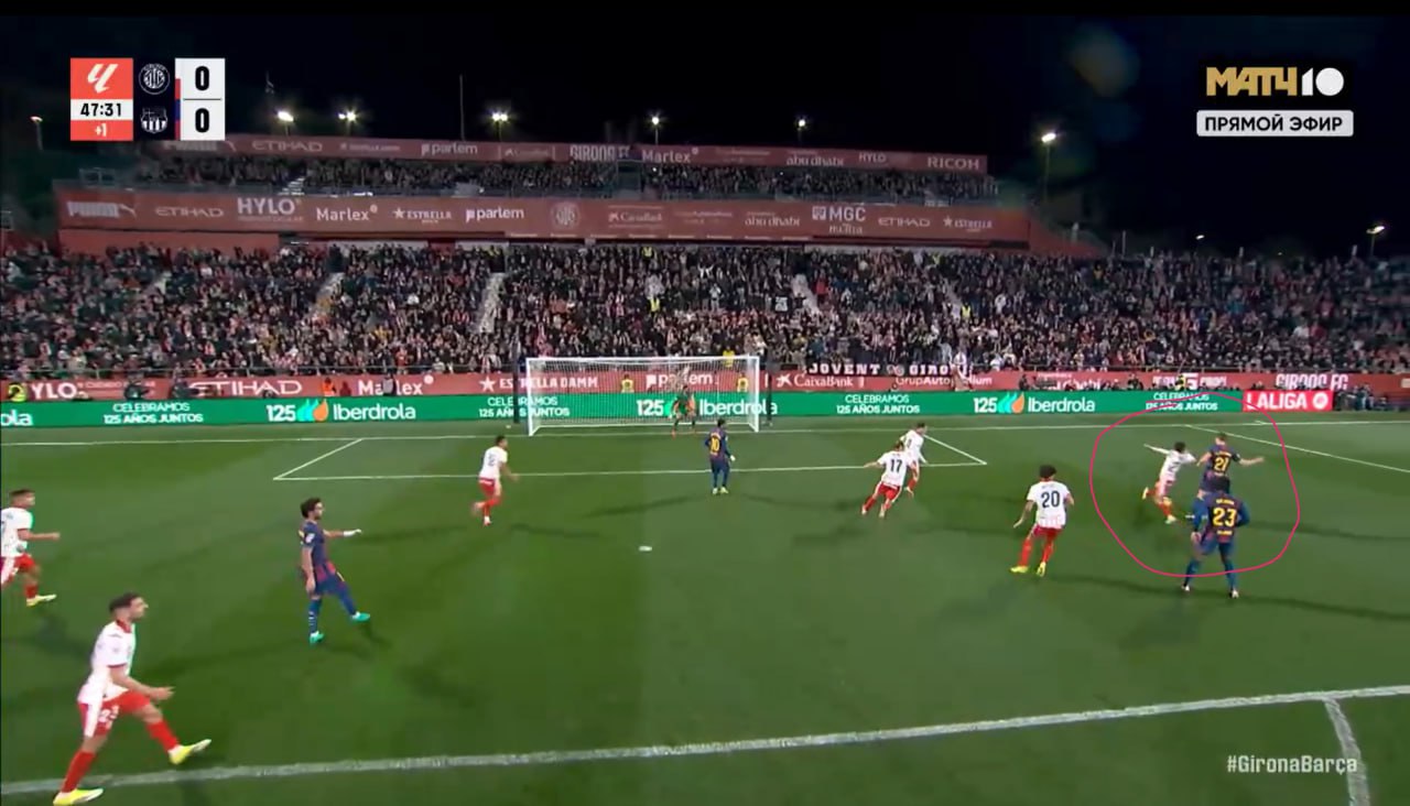 Yamal o‘yinning 17-daqiqasidayoq hisobni ochishi mumkin edi, ammo to‘pni darvozabon ustidan oshira olmadi. «Jirona» esa ukrainalik hujumchisi Vladislav Vanat orqali javob qaytardi: Garsiya uning bir necha xavfli zarbalarini qaytarishiga to‘g‘ri keldi.