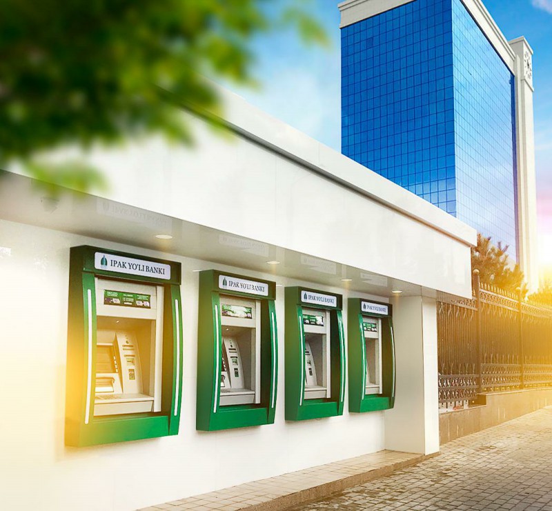 “Ipak Yo‘li” aksiyadorlik innovatsion tijorat banki tomonidan birinchi bosqichda umumiy ovqatlanish joylarida, mehmonxonalarda, turistlar ko‘p keladigan savdo-ko‘ngilochar markazlarida 50 ta bankomat o‘rnatildi. Ushbu bosqichda bankomatlar horijiy valyutani so‘mga ayirboshlash bilan bir qatorda milliy Uzcard va xalqaro Visa plastik kartalariga ham xizmat ko‘rsatmoqda. Bundan tashqari, mazkur bankomatlarda to‘lov kartasi pin-kodini almashtirish imkoniyati yo‘lga qo‘yildi.