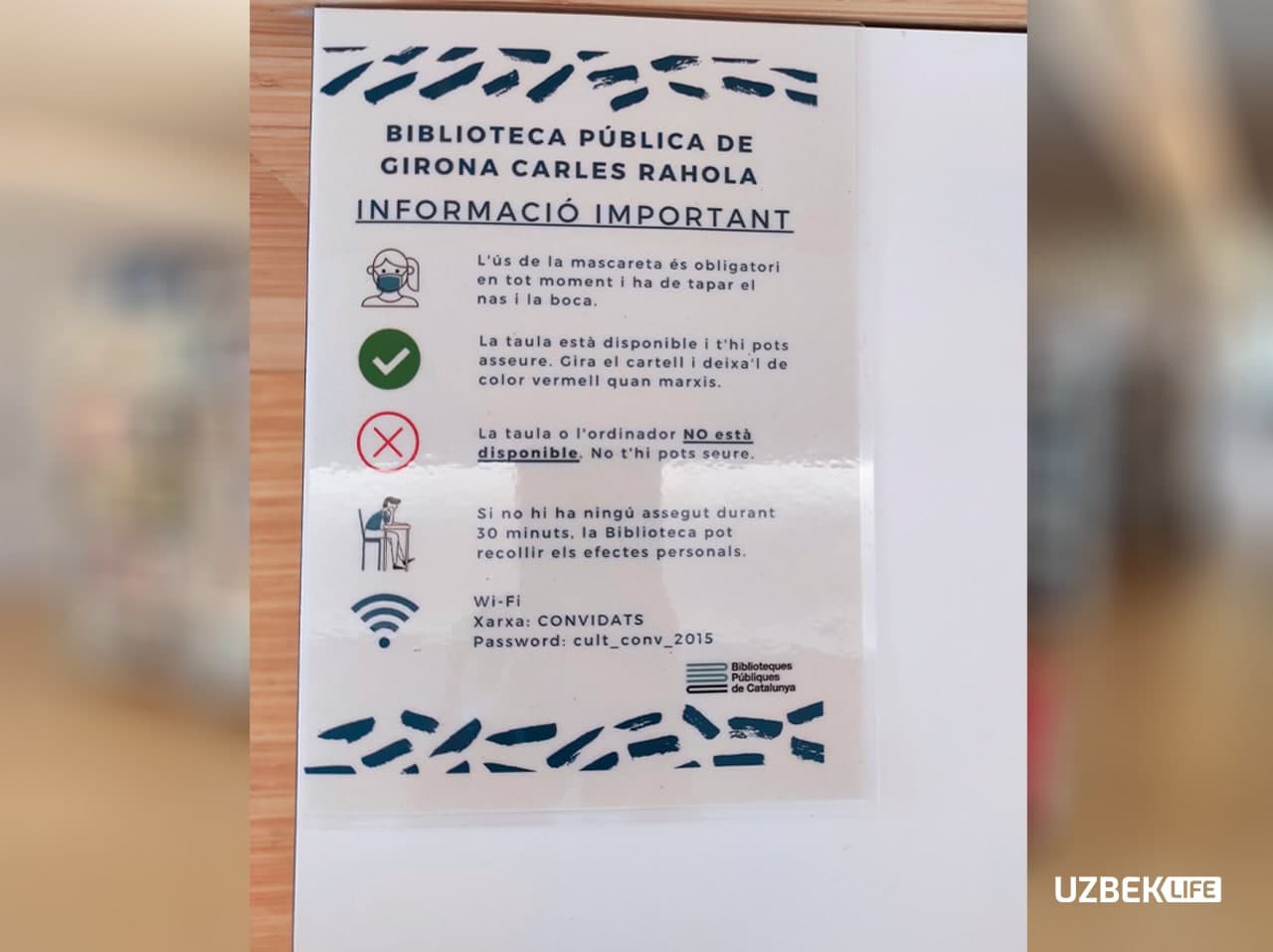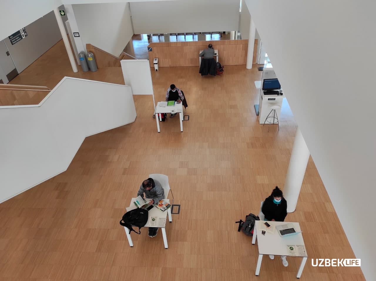 Shuningdek, o‘tirib dars qilish uchun tashkillashtirilgan 68 ta stolning har birida maxsus belgili varaqa mavjud. Uning bir tarafida yashil rangli «Foydalanish mumkin. Ketishda varaqani teskariga o‘giring» degan yozuv, ikkinchi tarafida qizil rangli «Foydalanishga yaroqsiz. Tozalanishi kerak» degan yozuv bor.