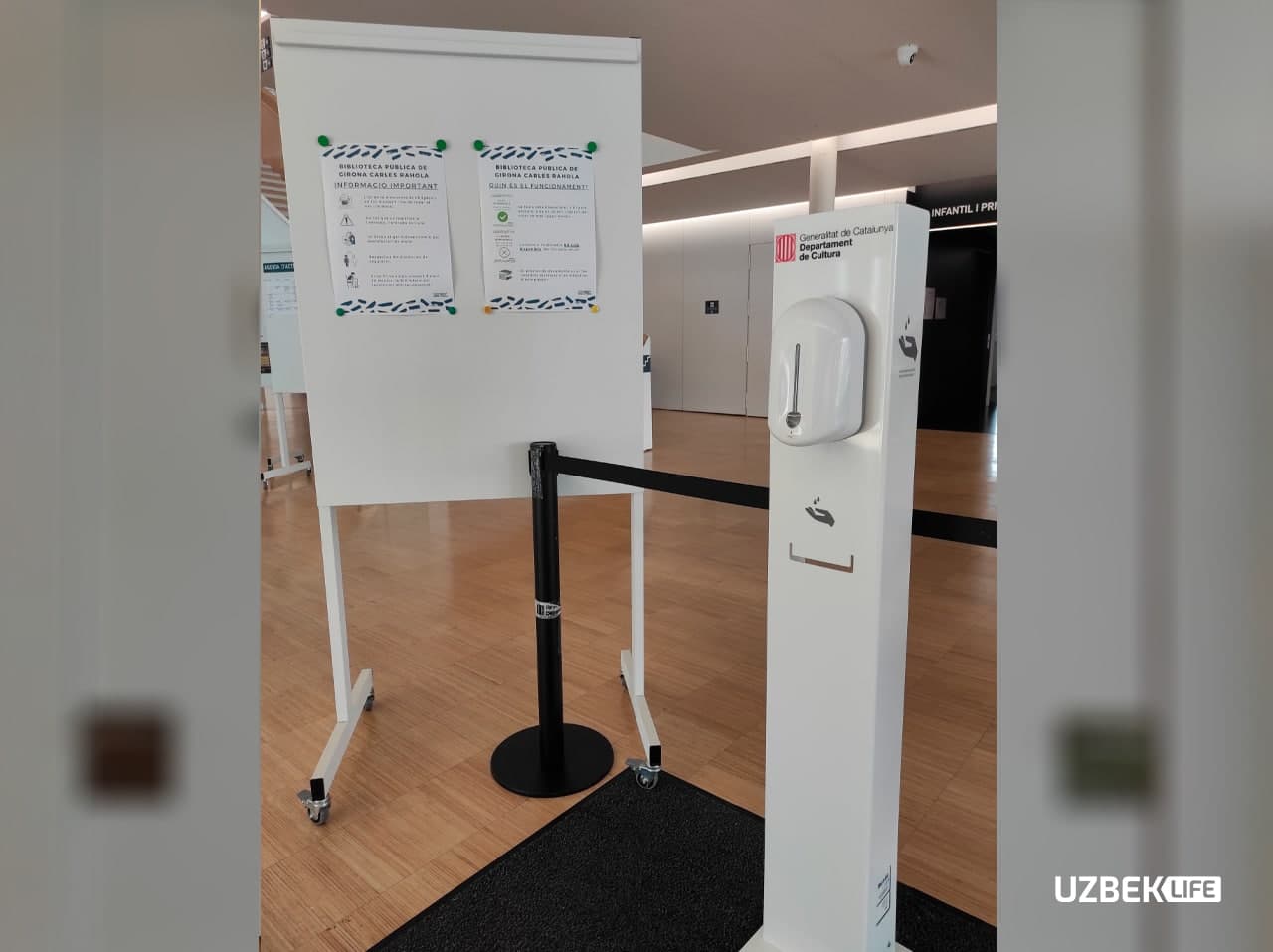 Eshikdan kirishingiz bilan qo‘lni dezinfeksiya qilish vositasini uchratasiz – kirishda qo‘lni dezinfeksiya qilish shart.