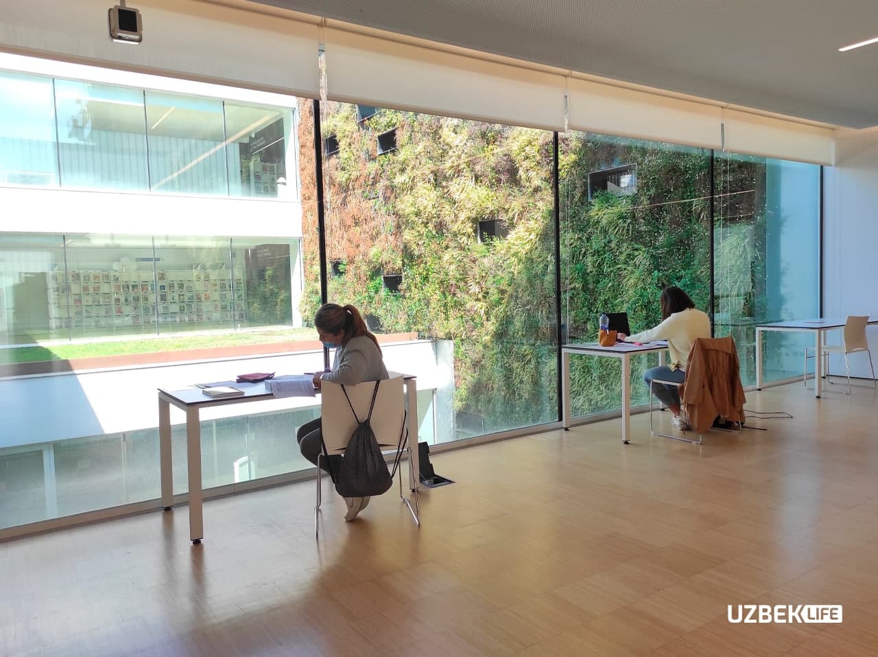 Ispaniyada binolarning ichidan alohida shishali xona qilib, u yerda daraxt, gul va boshqa manzarali o‘simliklar ekish orqali tabiiy dekoratsiya qilish ancha ommalashgan. Bunday dekoratsiyalarni Jirona kutubxonasida ham ko‘rish mumkin. Bunday dekoratsiya qarshisida o‘tirib dars qilsangiz, o‘zingizni tabiat qo‘ynida o‘tirgandek his qilasiz.