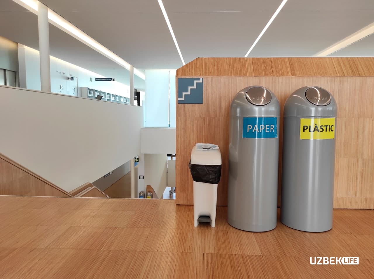 Kutubxonaning har-har yerida chiqindi qutilari ham mavjud. Odatda qog‘oz, plastik va ulardan boshqa turdagi chiqindilar uchun alohida qutilar qo‘yilgan bo‘ladi.
