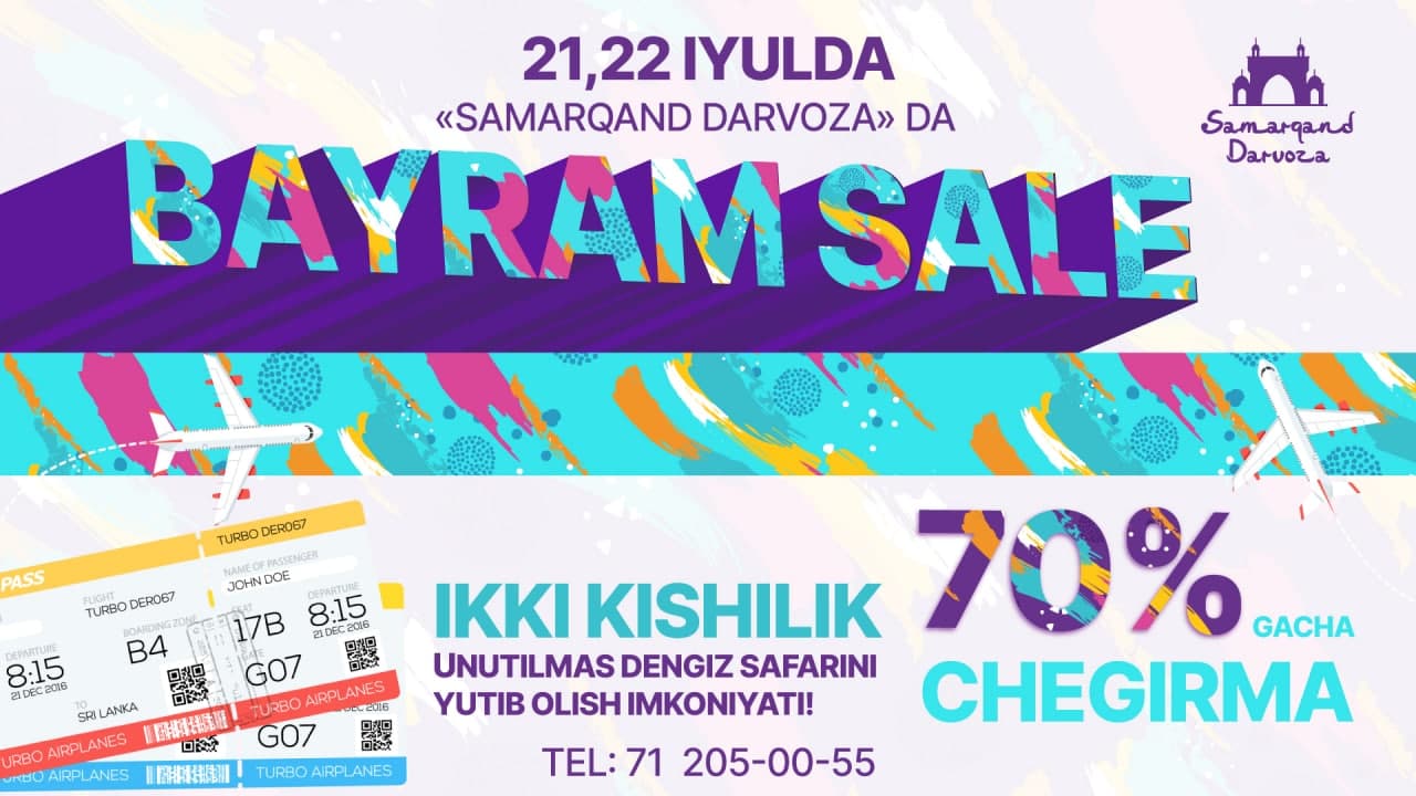 21-22 iyul kunlari “Samarqand Darvoza” SKM butun oilangiz uchun 70% gacha chegirmalarni e'lon qiladi