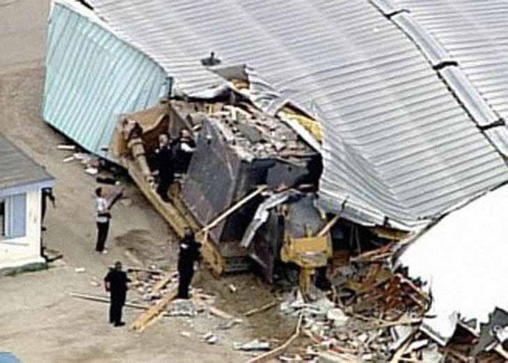 Zirhlangan katta buldozer turli binolarni bir hamladayoq tekislab tashlar ekan, mahalliy ma’muriyat, politsiya, o‘t o‘chiruvchilar va qutqaruvchilar unga qarshi nima chora qo‘llashni bilmasdi.