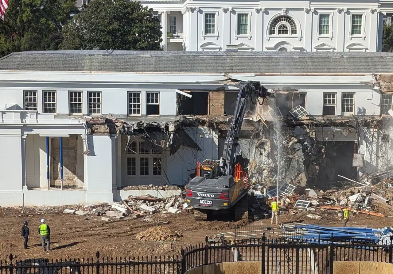 20 oktabr kuni quruvchilar sharqiy qanotdagi yopiq eshik va derazalarning katta qismini buzdi, Tramp so‘zlariga ko‘ra, u «to‘liq modernizatsiya qilinadi».