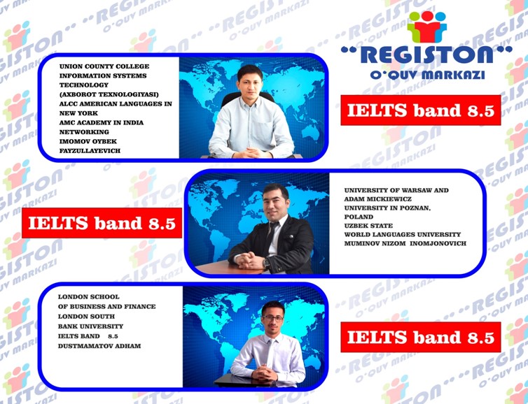 Mamlakatimizda IELTS testlaridan o‘tish uchun tayyorlanayotgan yoshlar soni kun sayin ortib bormoqda.  Bunga sabab yurtimizda hamda dunyoning nufuzli oliy o‘quv yurtlarida o‘qishni xohlovchilar uchun IELTS sertifikatining so‘ralishidir. IELTS testlarini osonroq bajarishni o‘rgatish yuzasidan juda ko‘p strategiyalar va usullar borligini hisobga olgan holda “Registon” o‘quv markazida IELTS imtihoniga tayyorlanishning o‘ziga xos uslubi yaratilgan. Unga ko‘ra, barcha o‘rganuvchilar o‘z darajalariga qarab guruhlarga taqsimlanadi va haftasiga uch bor asosiy darslarda qatnashadilar. Yakshanba kunlari maxsus dastur asosida SPEAKING (gapirish, suhbat ko‘rinishida)da qiziqarli mavzu yuzasidan to‘liq ingliz tilida suhbatda ishtirok etishlari mumkin.