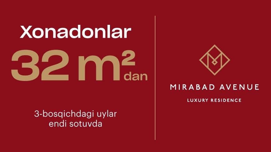 Mirabad Avenue: 32 m² va undan katta maydonli premium klassdagi apartamentlar 5 yil ichida o‘zini qoplaydi