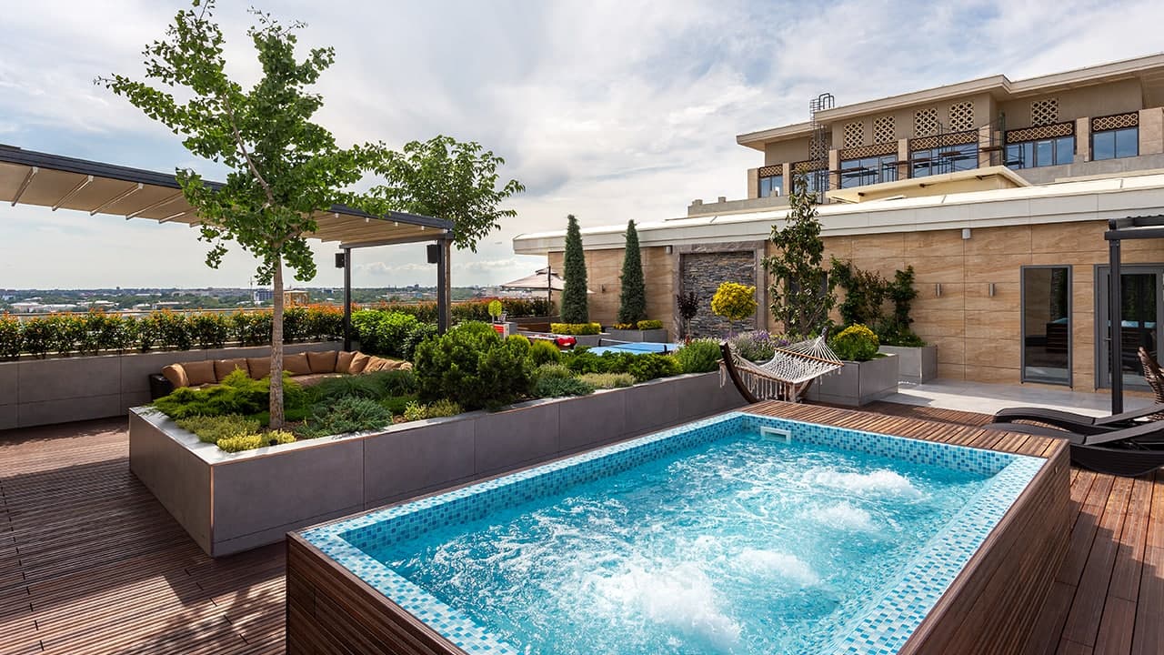 Majmuaning har bir blokida 170 dan 260 m² maydonga ega 4tadan 6tagacha terrasalar mavjud. Ular Italiyada ishlab chiqarilgan taxta plitalari bilan ta'mirlanib, tayyor holda topshiriladi. Bu to‘qqizinchi qavatdagi apartament egalari uchun eksklyuziv taklif. Shumtol daraxtidan ishlangan, termik qayta ishlovdan o‘tgan pol taxtalari chidamli va ekologik toza. Shu bilan birga, ular uchun yog‘ingarchilik yoki harorat o‘zgarishi ham qo‘rqinchli emas.