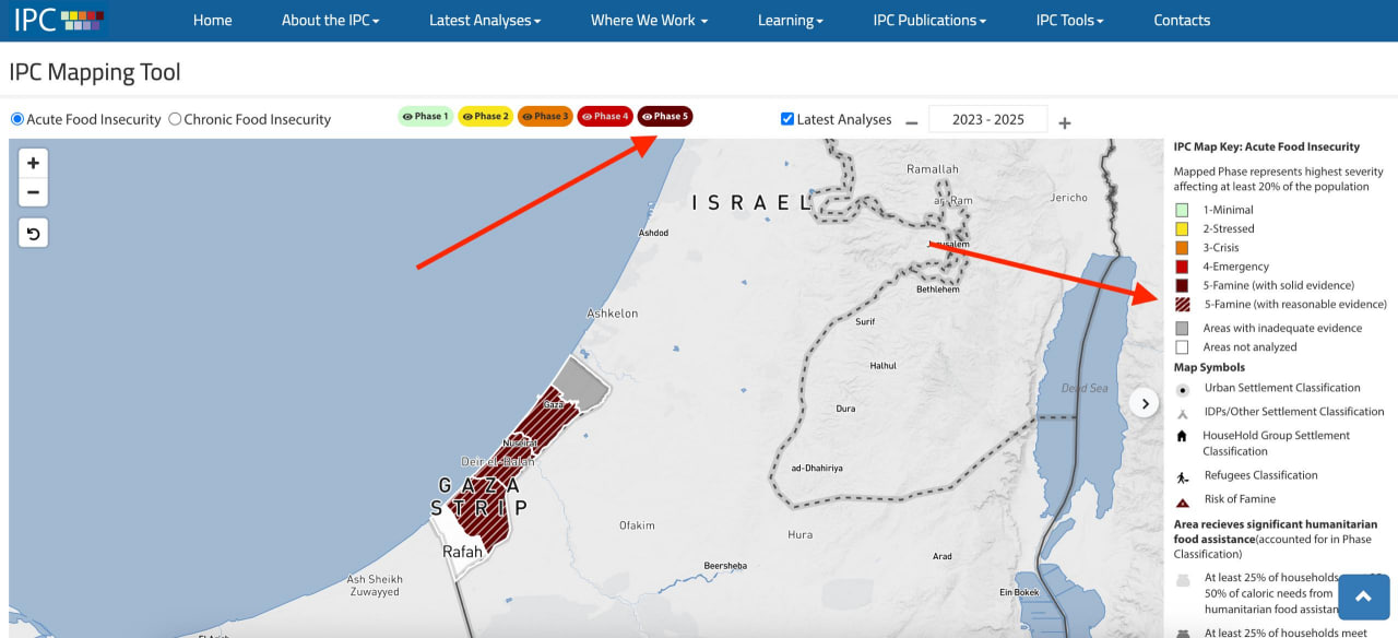 IPC juma kuni e’lon qilingan tahlilida faqat G‘azo, Deyr al-Balah va Xon Yunus hududlarini qamrab olganini ma’lum qildi. Janubiy Rafah esa deyarli aholi yashamagani bois hisobga olinmadi.