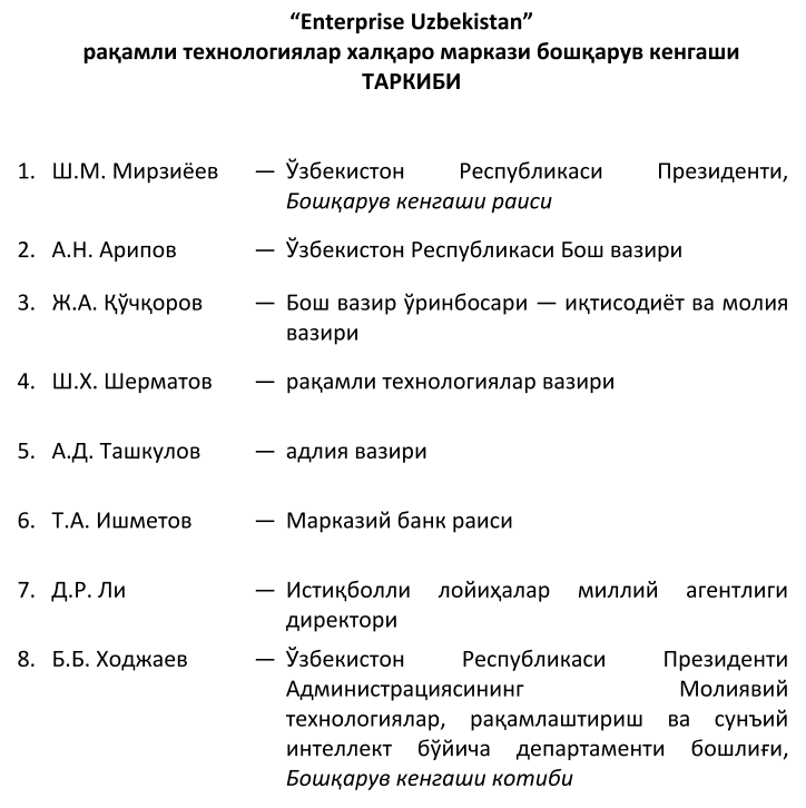O‘zbekiston prezidenti 26 noyabr kuni Enterprise Uzbekistan nomli raqamli texnologiyalar xalqaro markazini tashkil etish bo‘yicha farmon imzoladi.