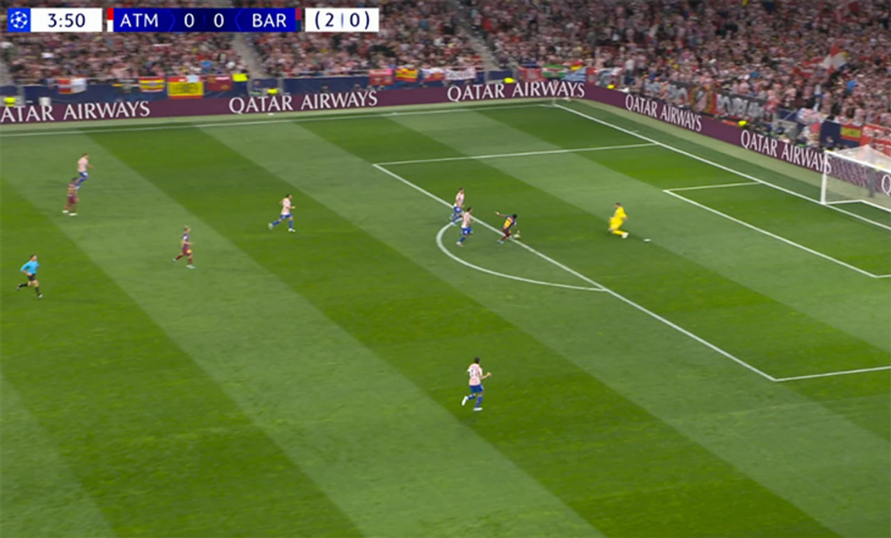 Bir hafta oldingi ssenariy takrorlandi – «Barselona» yana qizil tufayli o‘z maqsadiga erisha olmadi. Flik himoyachi Arauxoni hujum chizig‘iga tushirib, vaziyatni o‘nglashga harakat qildi. O‘yinning so‘nggi qismida aynan shu ikki futbolchi bittadan vaziyatga ega bo‘lishdi, ammo zarbalar kutilganidek chiqmadi. Tanaffusdan keyin ko‘k-anorranglilar xG bo‘yicha atigi 0,60 ko‘rsatkichi qayd etishdi. Simeone uchinchi marta «Barsa»ni Chempionlar ligasi chorakfinalida qoldirib ketdi.