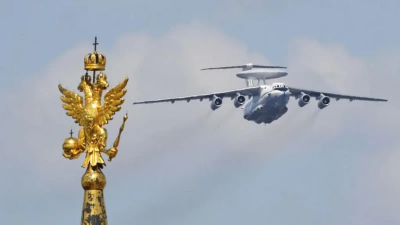 Videolavhalardan birida sovet ittifoqida Il-76 bazasida yaratilgan ikkita A-50 layneriga hujum qilayotgan dronlar ko‘rsatilgan.