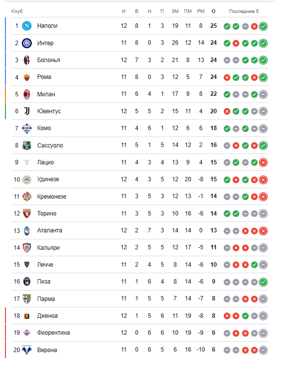 «Napoli» xalqaro tanaffusdan oldin barcha turnirlar doirasida qatorasiga uch o‘yinda gol urolmagan, A Seriyada «Bolonya»ga yutqazib, peshqadamlikni boy bergandi. Amaldagi chempionlar ajoyib qaytishni amalga oshirishdi va bu mavsumda o‘ziga o‘xshamayotgan «Atalanta»ga qarshi o‘yinni birinchi bo‘limdayoq hal qilishdi. Zambo-Angissaning jarohati tufayli boshlang‘ich tarkibdan o‘rin olgan David Neres ishonchni oqladi, u avvaliga Hoylundning pasidan keyin himoyachilardan qochib ketib, hisobni ochdi, keyin esa mehmonlar darvozaboni Karnesekkining himoyadan chiqishda yo‘l qo‘ygan xatosidan boshlangan hujumga ham gol bilan nuqta qo‘ydi. Bo‘lim so‘ngida Lang hisobni yiriklashtirdi va ikkinchi bo‘lim quruq rasmiyatchilikka aylandi. Endi «Napoli» kamida raqobatchilarning yakshanba kungi o‘yinlari yakuniga qadar turnir jadvalida peshqadam bo‘lib qoladi, Antonio Konte shogirdlari Yevropada kuchli beshlikning 2025 yilda birorta uy uchrashuvida yutqazmagan yagona jamoasi bo‘lib qolmoqda.