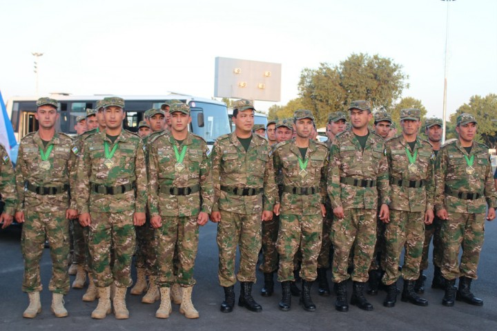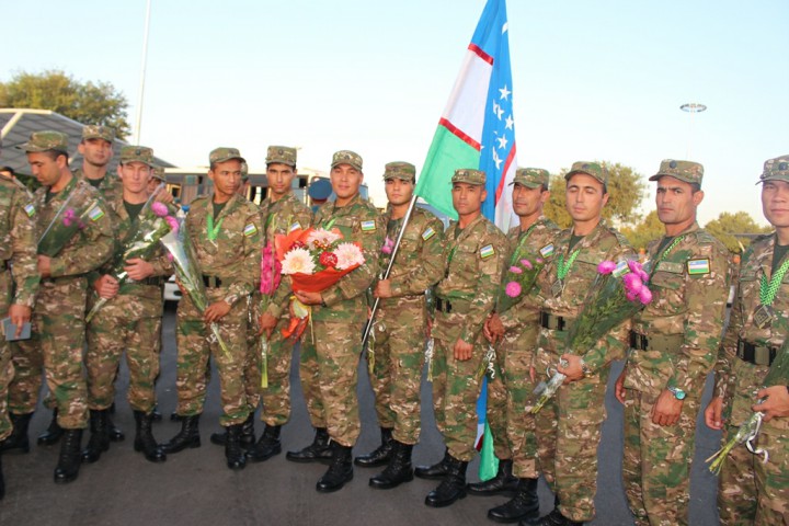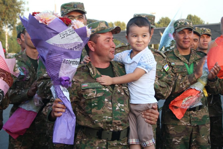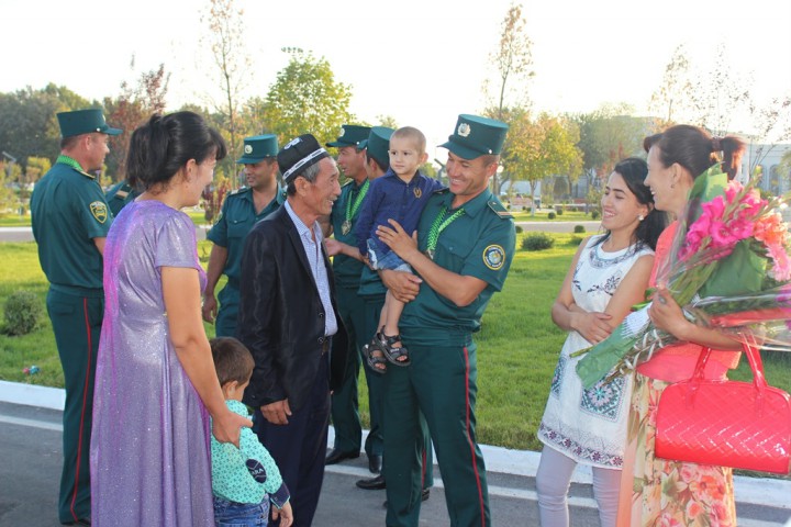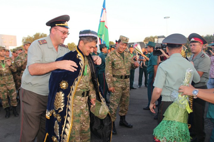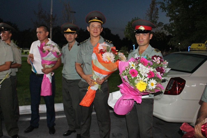 Aeroportda hamyurtlarimizni Mudofaa vazirligi vakillari, ishtirokchilarning yaqinlari va qarindoshlari tantanali ravishda kutib oldi.