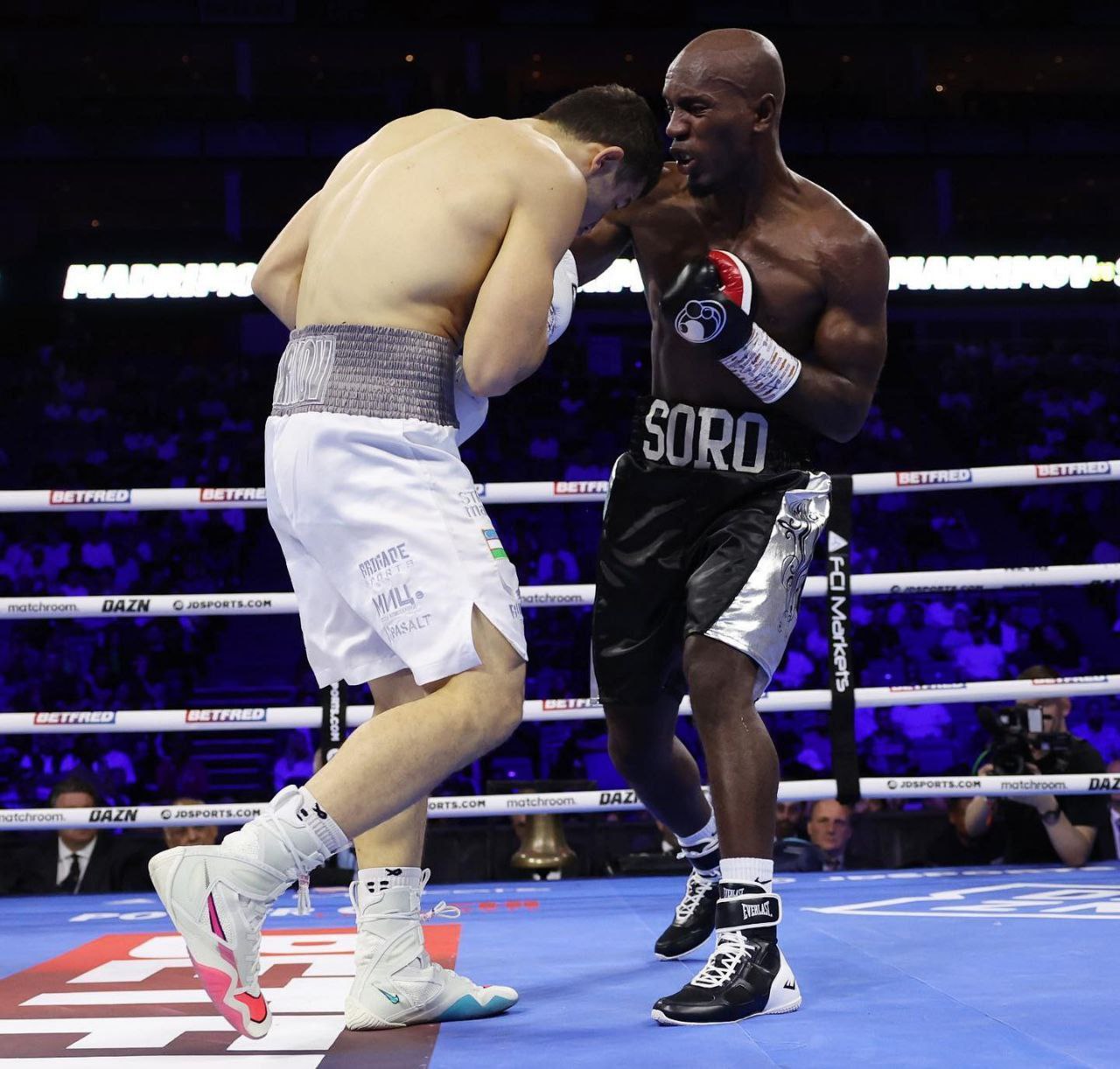 Madrimov va Soro o‘rtasidagi jang yana muddatidan oldin yakunlandi, fransiyalik bokschining qoshi yorildi